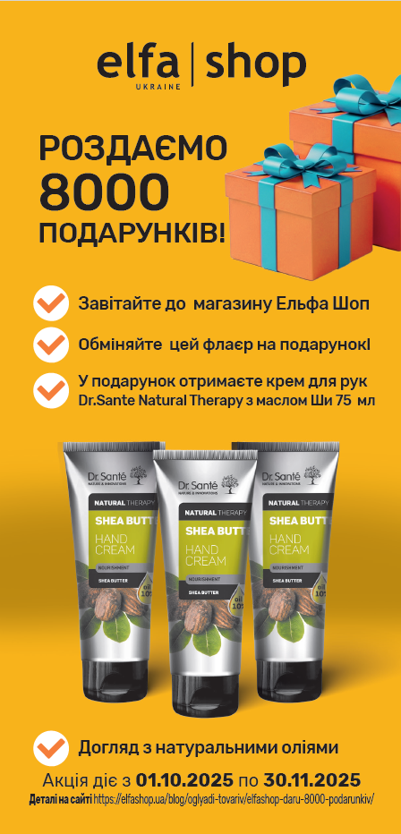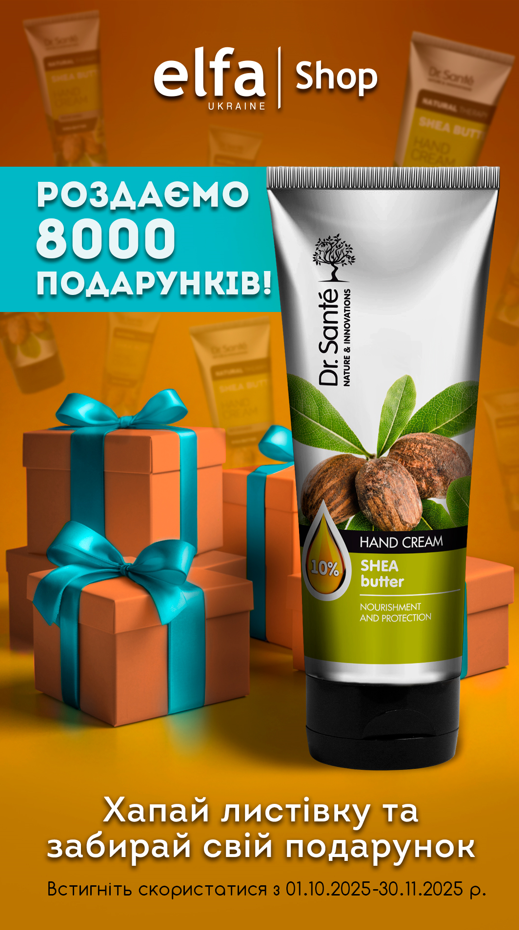| Що ви отримаєте в подарунок?Кожен власник флаєра гарантовано отримає:Крем для рук Dr.Sante Natural Therapy з маслом Ши 75 мл Особливості подарунка: