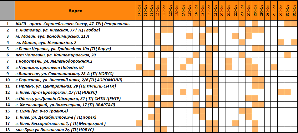 Помаранчевим кольором відмічені дні, коли будуть роздаватися флаєри.