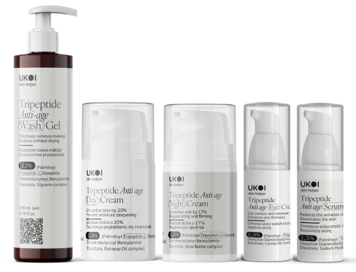 UKOI Tripeptide Anti‑Age з трипептидами — це серія для догляду за шкірою, розроблена з акцентом на антивіковий ефект.