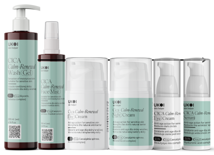 UKOI Cica Calm‑Renewal з центелою — серія антивікового догляду, створена за концепцією SLOW BEAUTY: засоби для поступового, але ефективного омолодження шкіри через обдуману повсякденну рутину. Центела азіатська (Cica) — ключовий компонент, який пом'якшує, заспокоює шкіру, відновлює її природний бар'єр, покращує пружність і надає свіжий вигляд.
