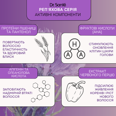Що входить до набору Dr.Sante Реп’яхова серія проти випадіння волосся: