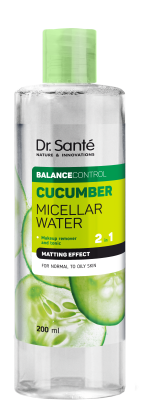 Міцелярна вода Dr.Sante Cucumber Balance Control 2в1 Тонік і демакіяж - це ідеальний продукт для повсякденного очищення шкіри обличчя від забруднень, макіяжу та надлишкового жиру. Спеціально розроблена для нормальної та схильної до жирності шкіри. Створена на основі пом’якшеної води.