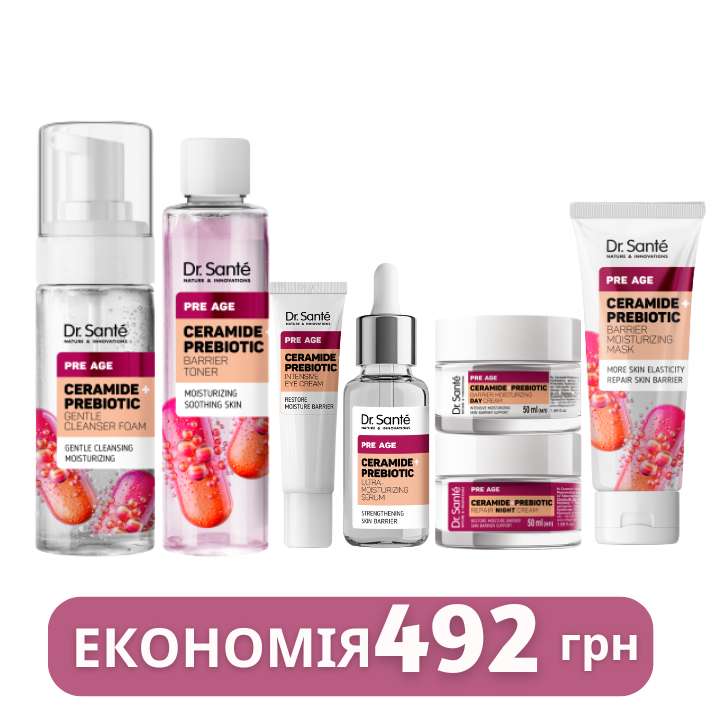 Набір Dr. Sante Pre Age створений для шкіри з першими ознаками вікових змін. Завдяки комбінації керамідів та пребіотиків продукти відновлюють природний бар’єр шкіри, глибоко зволожують, захищають від подразнень та допомагають зберегти здоровий, сяючий вигляд.