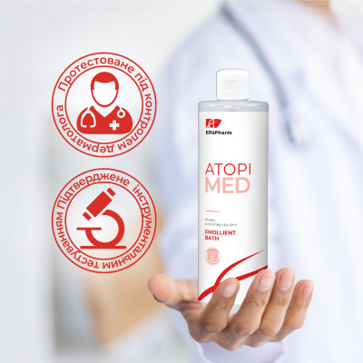 Засіб для ванн – оберігає шкіру від пересушування. Засіб серії Atopi Med рекомендований для прийняття ванн у людей з дуже сухою та атопічною шкірою та підходить для щоденного застосування. Після прийняття ванни з додаванням засобу на поверхні шкіри утворюється захисний шар, що зберігає її зволоженою тривалий час. Завдяки ретельному підбору активних компонентів, засіб для ванн інтенсивно пом'якшує і зменшує свербіж. Підходить для людей з чутливою і ніжною шкірою, схильної до запалень і алергічних реакцій. Під час дослідження встановлено, що Пом'якшуючий засіб для ванн Atopi Med добре переноситься шкірою, оскільки в тестованій групі добровольців не було ніяких подразнень і алергічних реакцій.