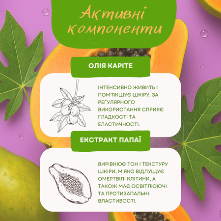 Лінія поєднує екстракт папаї та масло ши, що глибоко живлять і відновлюють шкіру, роблячи її шовковистою, еластичною та сяючою.