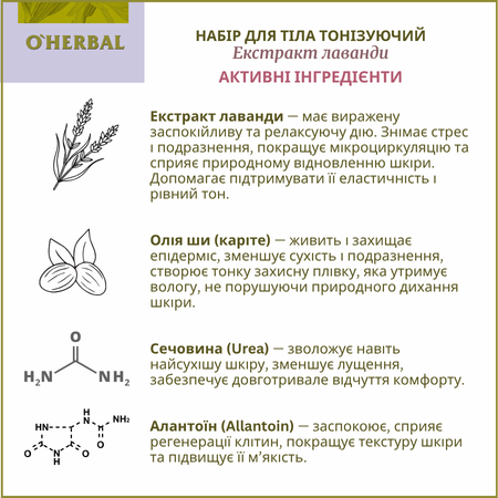 Що входить до набору для тіла розслаблячий O’Herbal Екстракт Лаванди:
