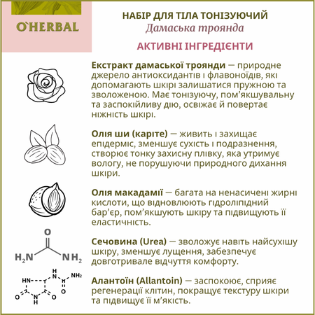 Набір O’Herbal Дамаська Троянда— це делікатний комплекс для зволоження, живлення та тонізації шкіри тіла.